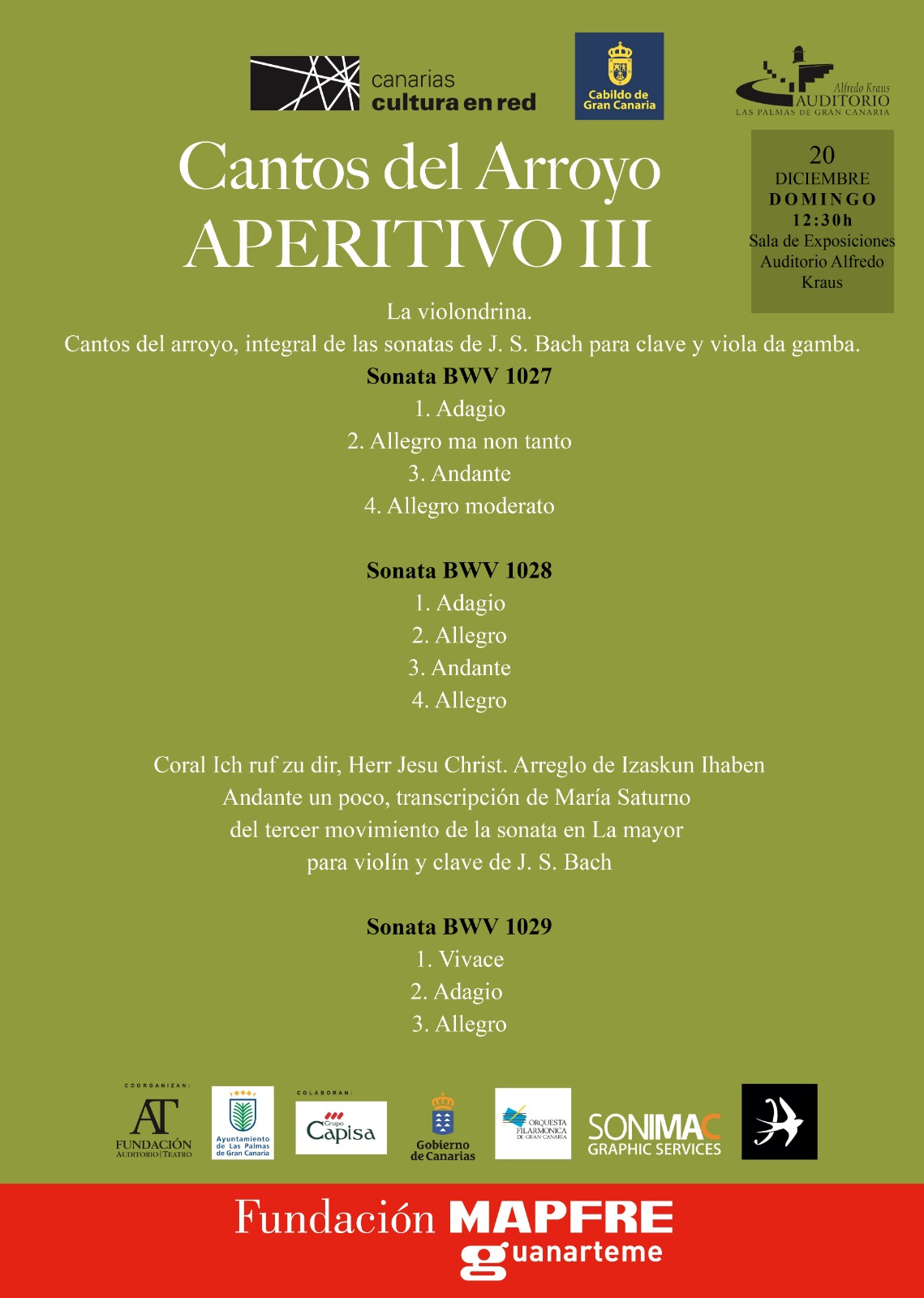 Aforo limitado, entrada previa inscripción a través de la web del International Bach Festival https://www.ibfcanarias.com/projects/aperitivo-iii